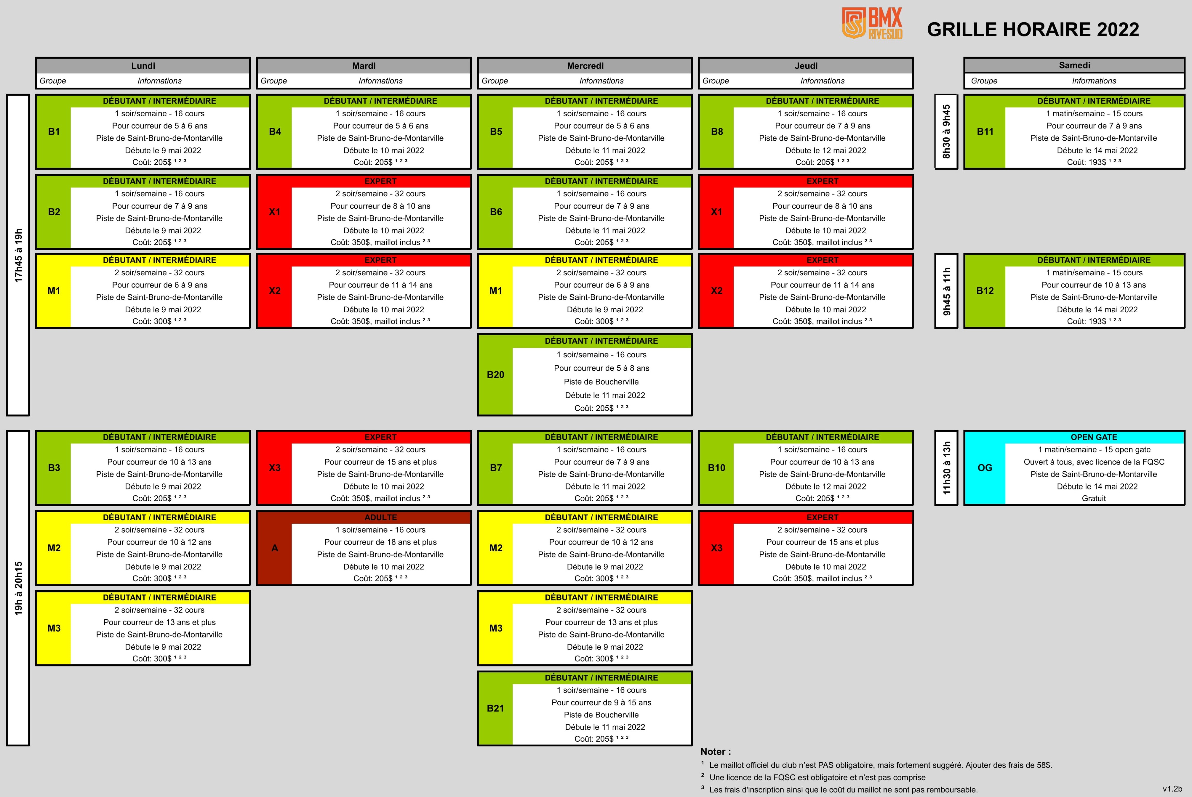 C’est lundi prochain que débutera notre belle saison de BMX 2022. Afin que tous se déroule bien, voici quelques instructions quant aux groupes et à la zone de rencontre pour la semaine prochaine.