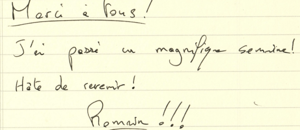 Ce camp de perfectionnement a été une réussite sur toute la ligne! Quelle belle opportunité pour les jeunes de rencontrer cet athlète de haut niveau qui a su leur donner des conseils personnalisés pour les amener à se dépasser. Par le message qu’il nous a envoyé, faut croire que Romain a aimé son passage au Québec!